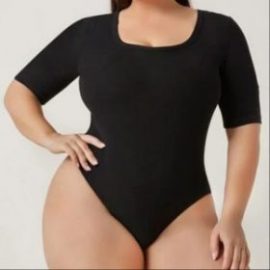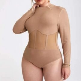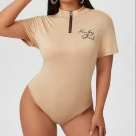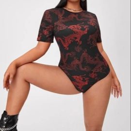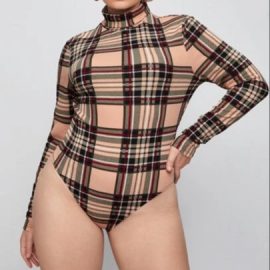 Neck Plaid Form Fitted Bodysuit – Plus Size