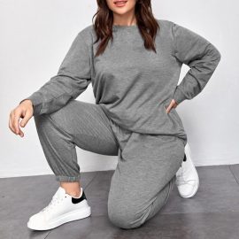 Marled Knit Sweatshirt & Pants Set – Plus Size