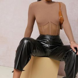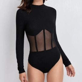 Neck Plaid Form Fitted Bodysuit – Plus Size