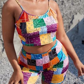 Paisley Print Crop Top & Biker Shorts Set – Plus Size