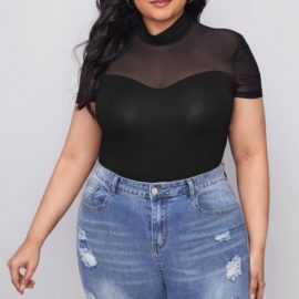 Mesh Insert Bodysuit – Plus Size