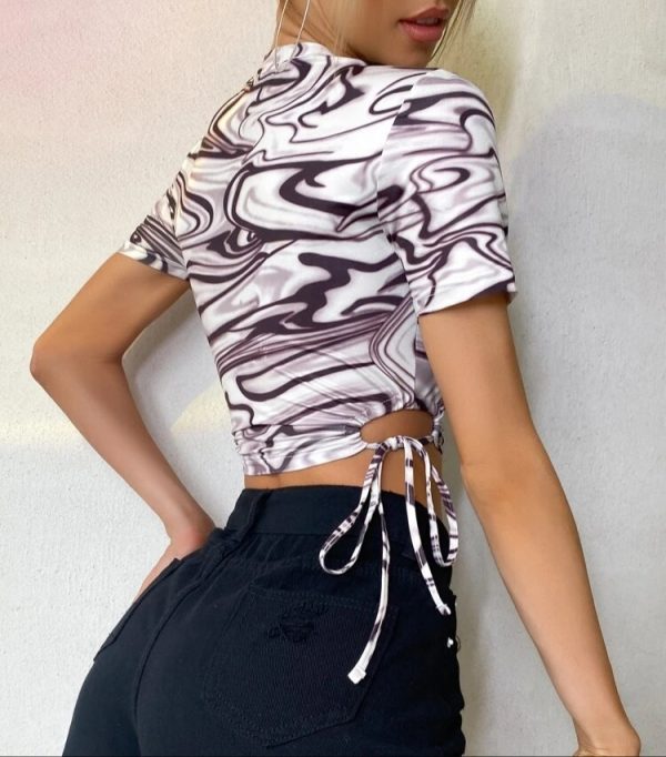 Be the first to review “Marble Print Drawstring Hem Crop Tee”