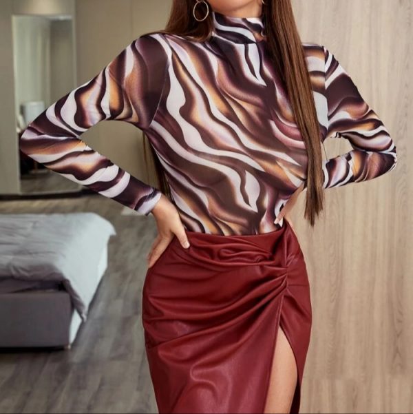 Be the first to review “Marble Print Mock Neck Mesh Bodysuit”