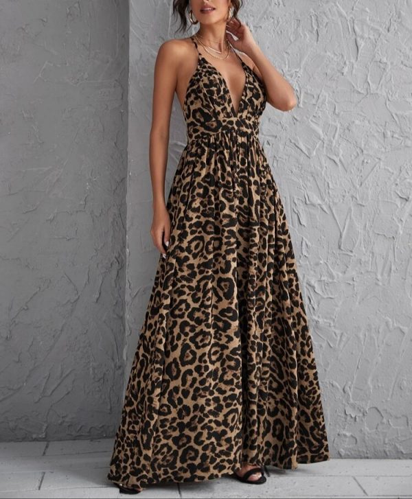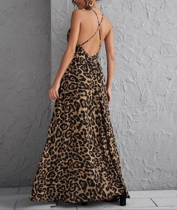 Be the first to review “Plunging Neck Crisscross Open Back Leopard Dress”