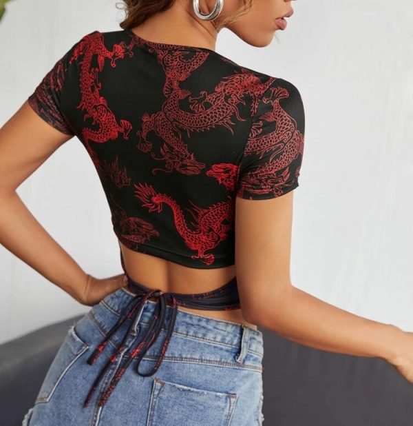 Be the first to review “Tie Back Chinese Dragon Crop Top”