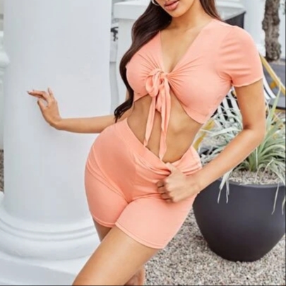 Be the first to review “Tie Front Crop Top With & Biker Shorts”